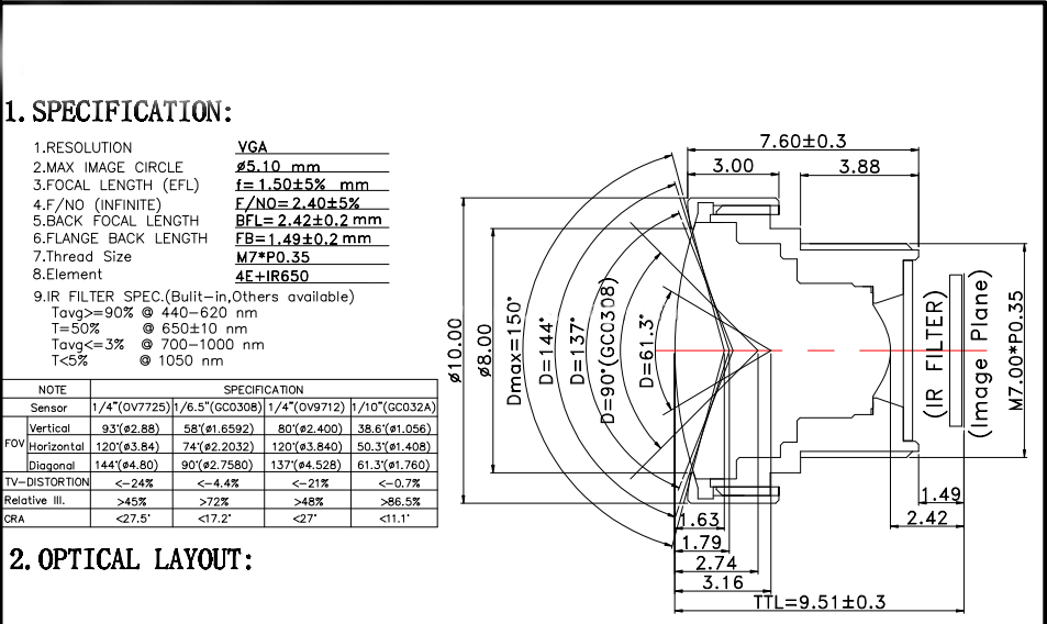 2.4mm F1.50 Megapixel 4E M7*0.35P Lens Aerial sports DV camera Lens cctv lenses for automotive surveillance