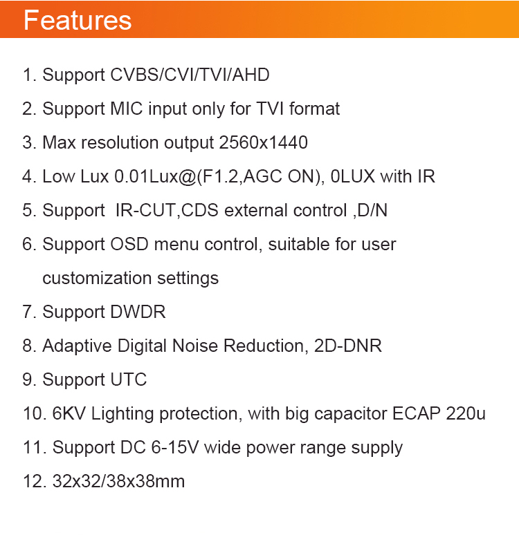2MP 4IN1 AHD/TVI/CVI/CVBS Coaxial Audio PCB Board warm light IR LED