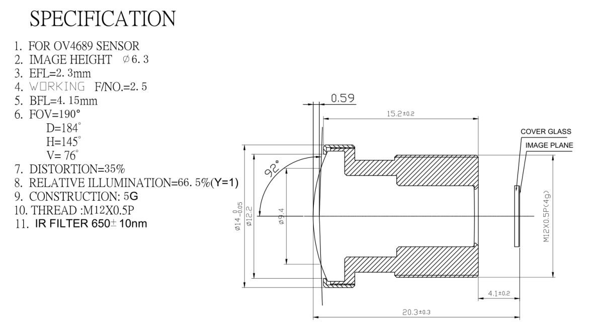 HD mipi wide angle fixed focus 5G fisheye lens 4K law enforcement camera sports DV camera module EFL2.35