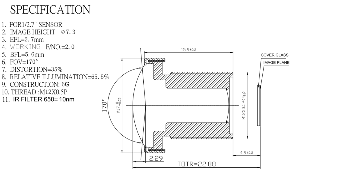 Law Enforcement on-board lens 1/2.7" 2.7mm F2.0 security cameras CCTV LENS