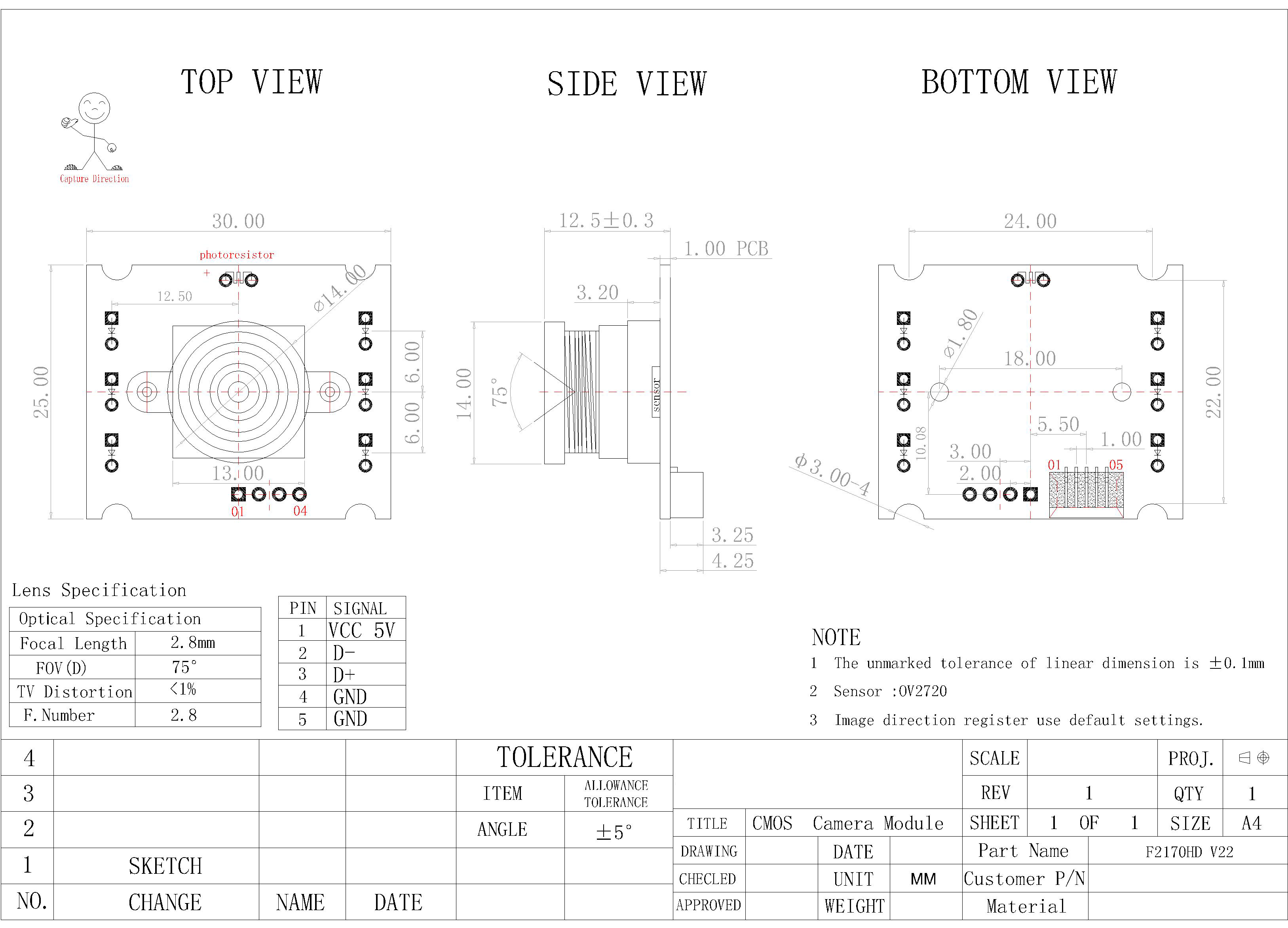 Photosensitive Control 1920*1080 High Resolution Camera Module AF Infrared Camera Cmos Ov2720 Sensor Module